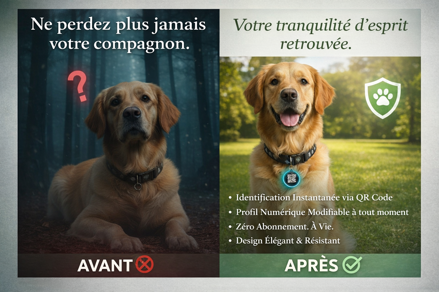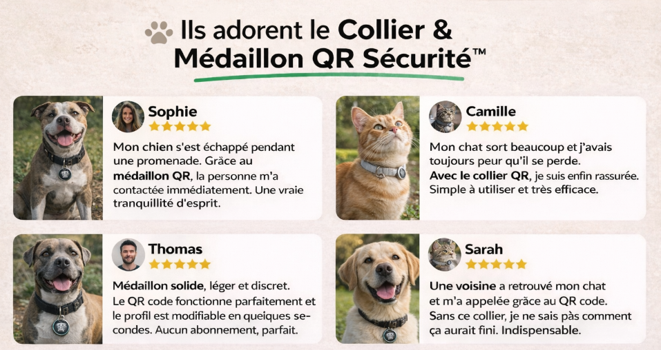 Ce médaillon QR intelligent permet d’identifier immédiatement votre animal en cas de perte.