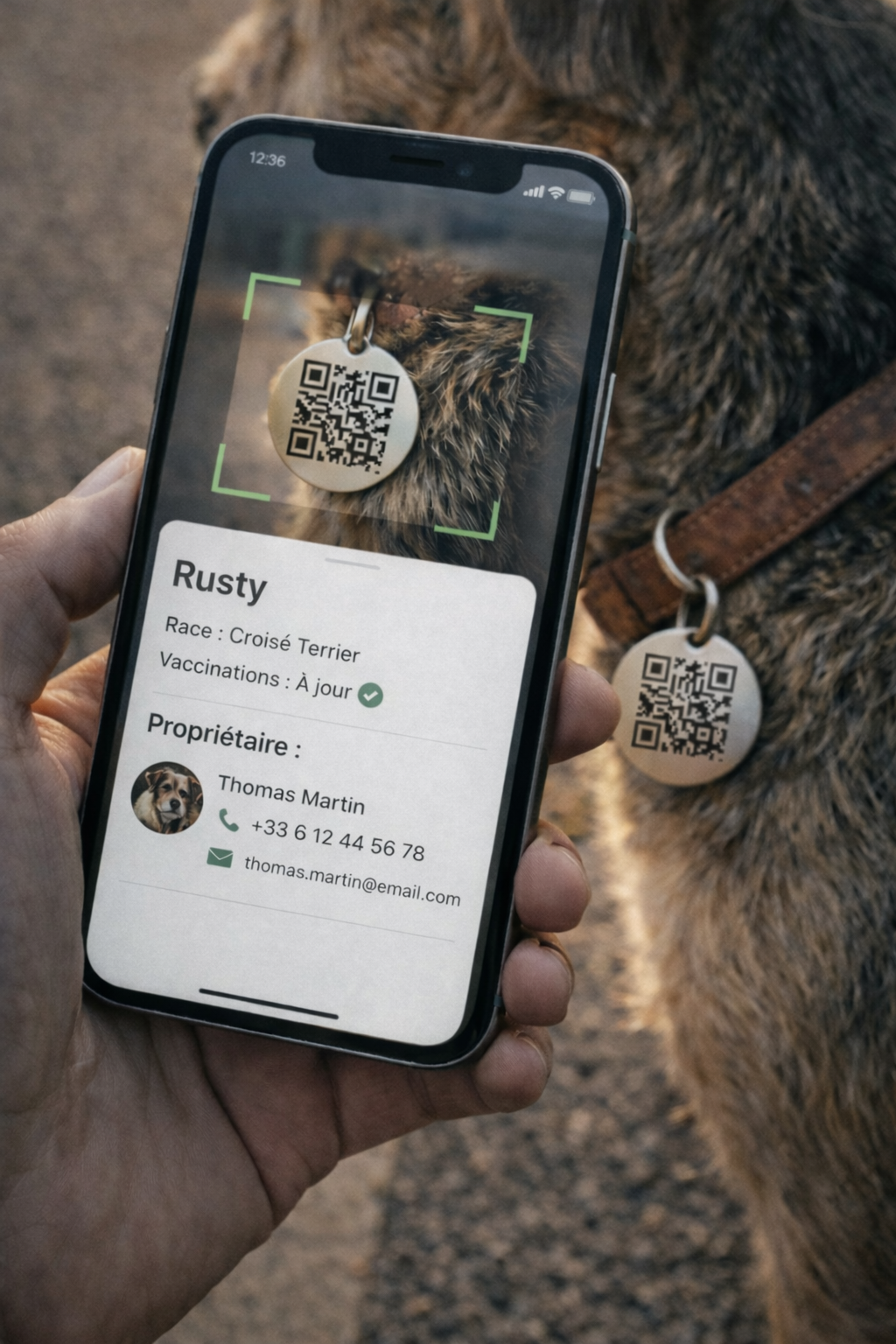 Un simple scan avec un smartphone donne accès à ses informations essentielles et aux coordonnées du propriétaire — sans application, sans abonnement.